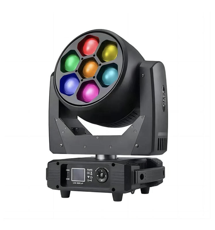 Lampu wash moving head profesional dengan kemampuan zoom canggih, dirancang untuk aplikasi pencahayaan panggung dan hiburan.