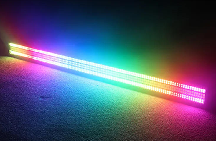 Sistem pencahayaan strobe RGB profesional yang menampilkan total 72 segmen untuk efek visual dinamis dalam aplikasi hiburan dan panggung.